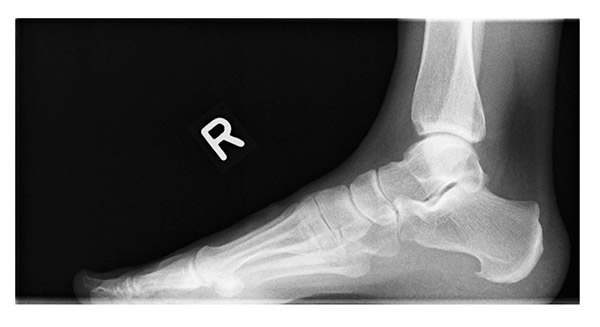 Abb. 1: Deutlich sichtbarer Knochensporn am Fersenbein (Calcaneus)